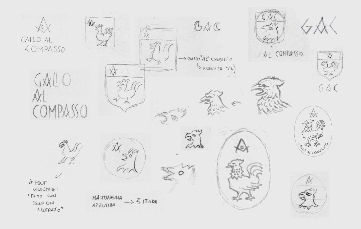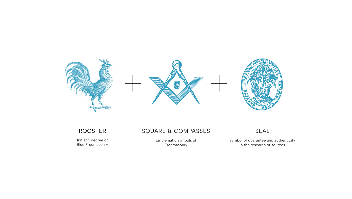 The logo concept develops around the Masonic symbols of the rooster and the compass: the rooster represents the principle, the first step of the Apprentice toward the dawn of knowledge; the compass represents the culmination, the final stage of the initiatory path, in which the Freemason reaches the degree of Master Mason.
