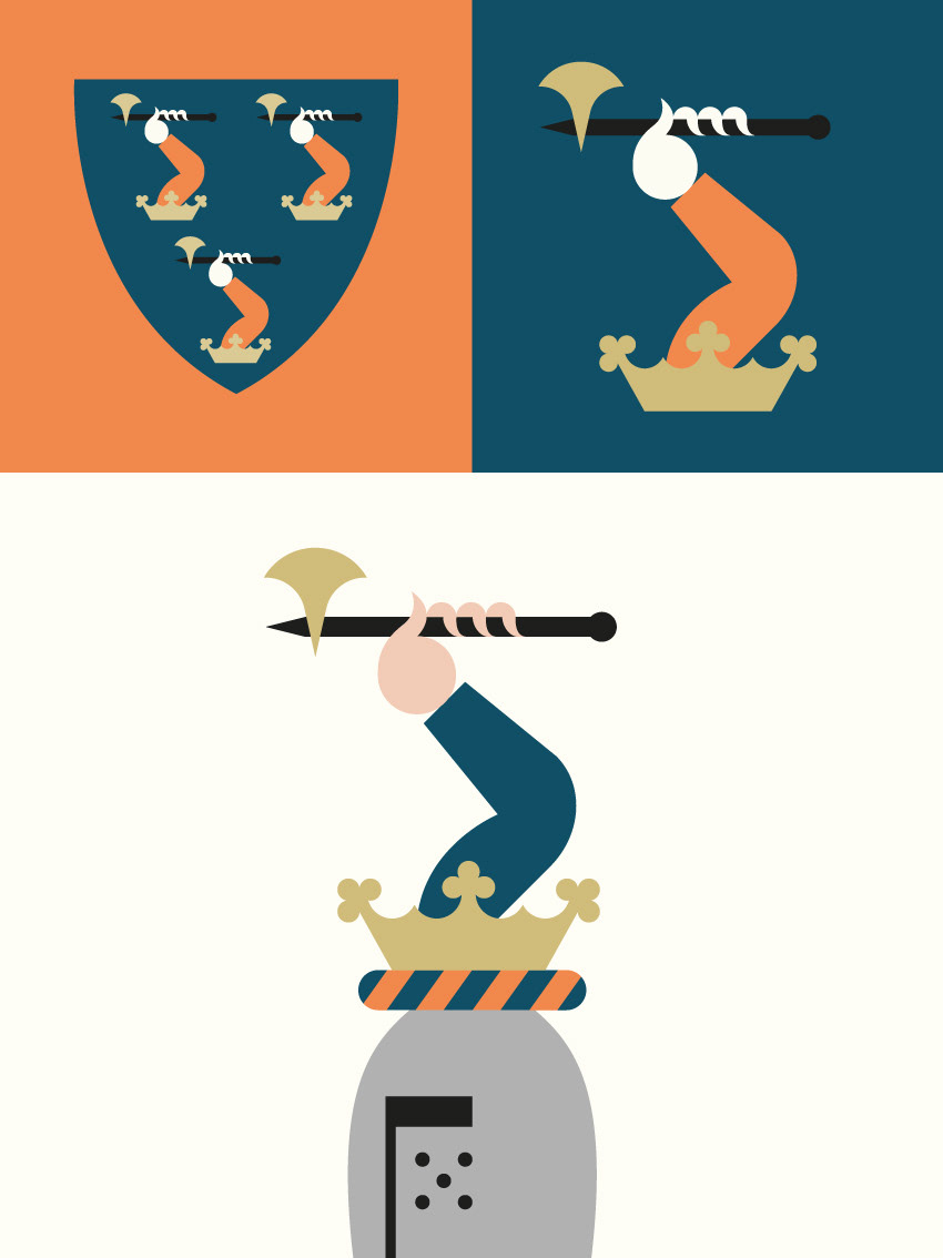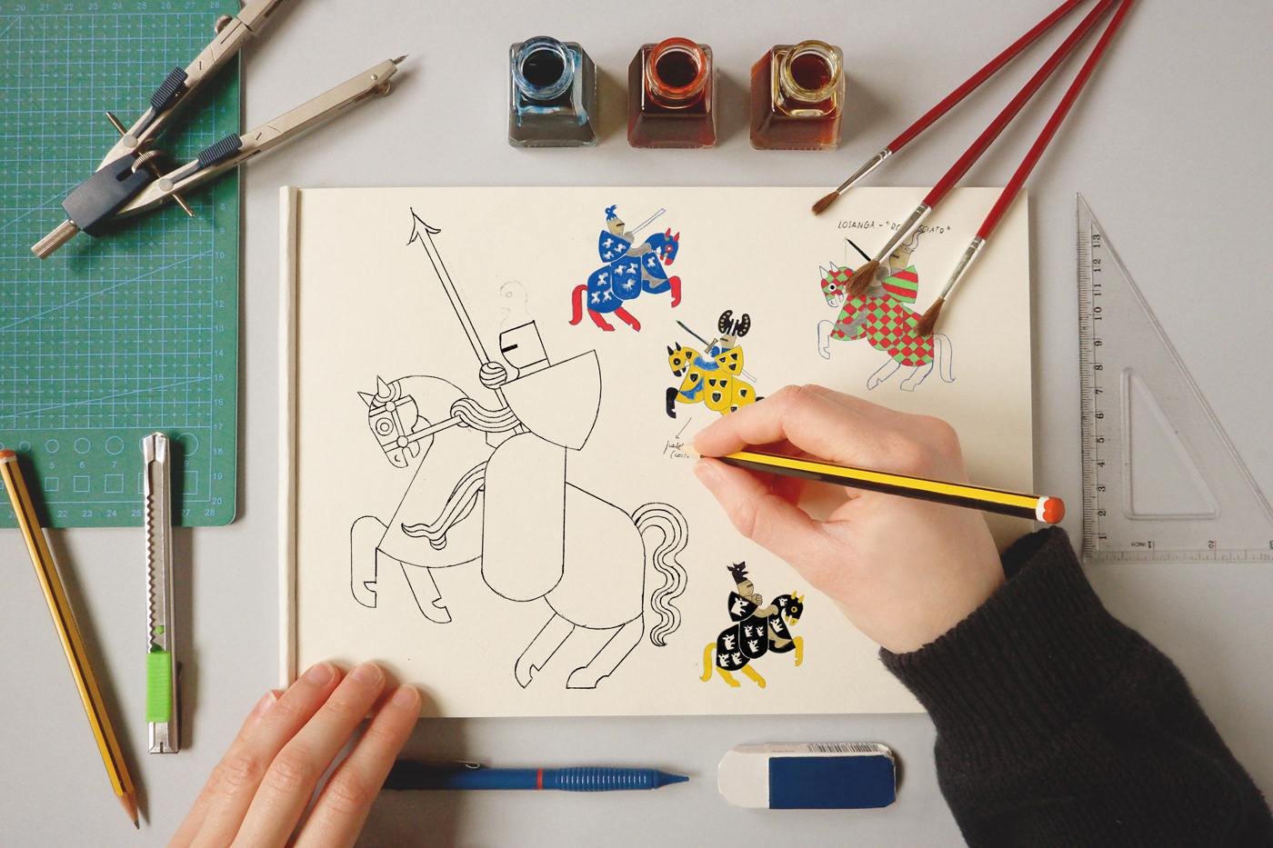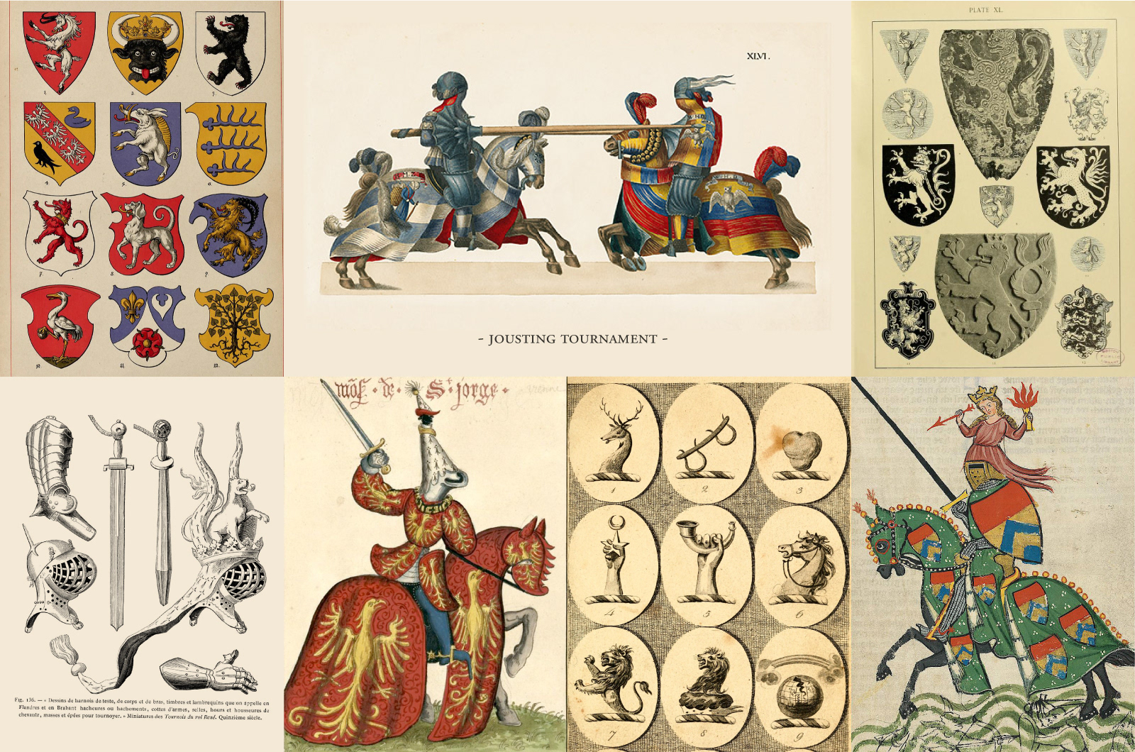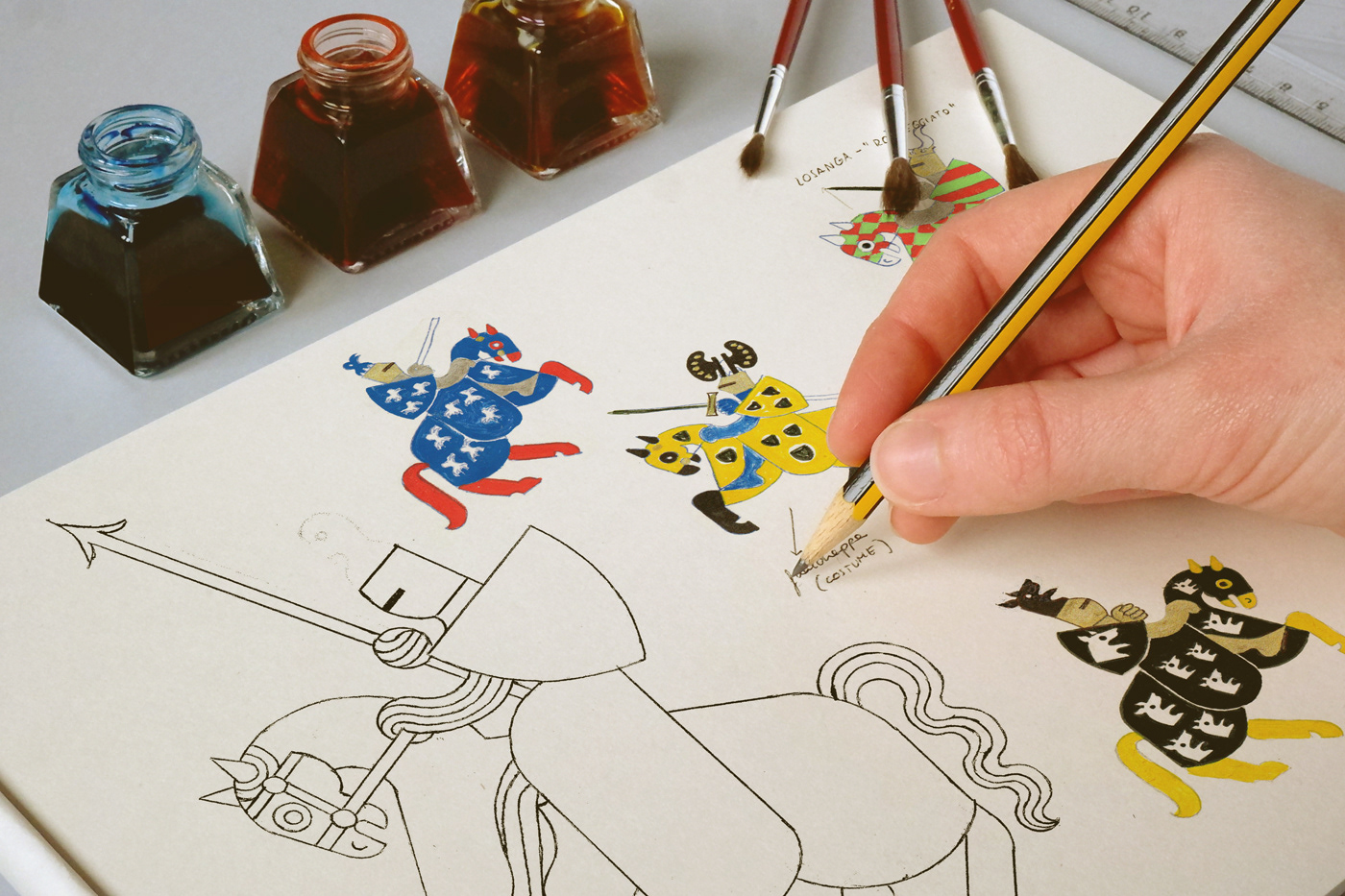 Thirty are the knights and thirty are the heraldry and crests designed for each of them: animals, human and chimeric figures, plants and inanimate objects, combined with bright colors, are the identifying symbols that tell the personality of each knight. Thirty are also the names of the knights, which were conceived by drawing inspiration from the lexicon of blazon.