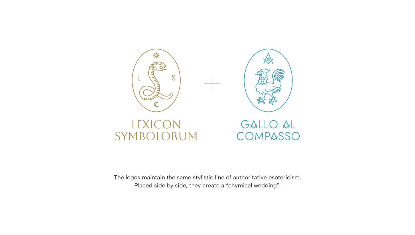 Gallo al Compasso is a project belonging to the Lexicon Symbolorum universe and focuses on themes related to Freemasonry and anti-Freemasonry. A fundamental aspect of the branding of Lexicon was therefore the conception of a brand with a strong and distinctive identity, capable of being developed across multiple applications: the projects derived from it are required to maintain a coherent stylistic and editorial reference, ensuring a direct and recognizable connection to the parent project, Lexicon Symbolorum.