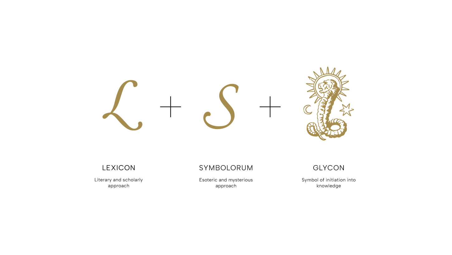 The brand’s initials (L+S), combined with the symbol of Glycon, give rise to a zoomorphic monogram which, enclosed within an oval, becomes a seal of guarantee and authenticity — a luminous point of reference for initiation into the knowledge that is shared and narrated through the project.